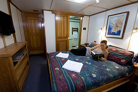 Stateroom is a double bed only, suitable for 2 passengers, singles are required to pay sole occupancy. Due to light aircraft weight restrictions, your total luggage weight is limited to 20 kilograms/ 45 lb per person. A Marine Park entry fee and Port Fee is payable on board.