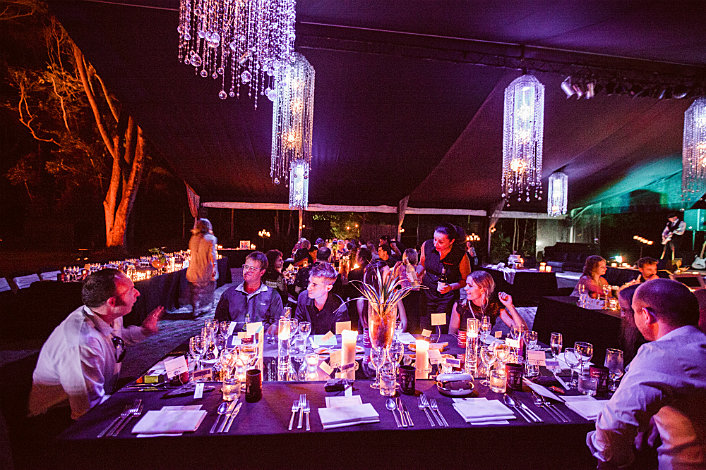 • Return hotel coach transfers from Port Douglas • Spectacular rainforest setting • Six course plated tasting menu seated under stunning chandelier and candle lit silk marquee • Quality Australian sparkling wine, red and white wine, beer and soft drink • Tables may be booked for two or your group size