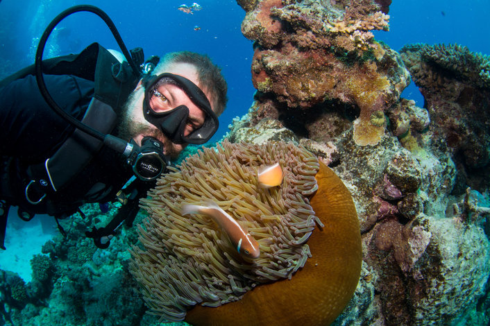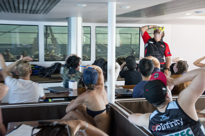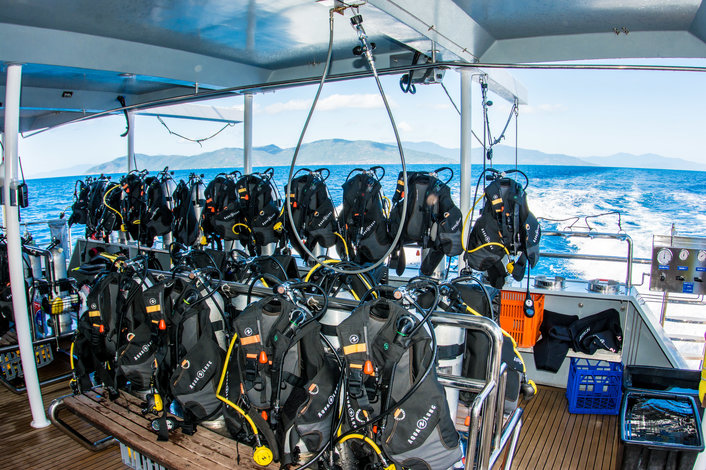 - Introductory Dive - So you would like to get up close and personal with the fish and the coral like Jaques Cousteau!!! You can pre-book your first dive, or book up to 2 dives on board. Intro diving is safe, fun, easy and the best way to see the Great Barrier Reef. Our Diving Instructors are highly experienced, calm and fun to be with. NO experience is necessary, and you don’t even have to be able to swim. You will be given a full on-deck briefing, shown how the equipment works and in small groups of no more than 4 divers, be led on a Diving Instructor controlled dive. Already hold Open Water Dive Certification? You can pre-book your first dive, or book up to 2 dive whilst on board. Just bring along your dive licence. Prescription masks available for hire on board for $10. T shirts, snacks & merchandise available on board. We can offer a transfer service from your Cairns or Northern Beaches hotel. This must be pre-booked but you are required to pay for the transfer directly at check in. Transfers from City hotels $18.00 per person / from Northern Beaches hotels $25.00 per person.