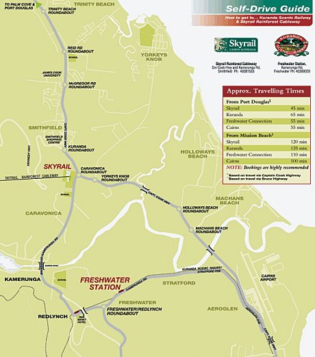 Coach transfer from Freshwater Connection Railway Station to Skyrail's Smithfield Terminal [3.30PM][Please click the Route MAP below to enlarge and to preview videos.]