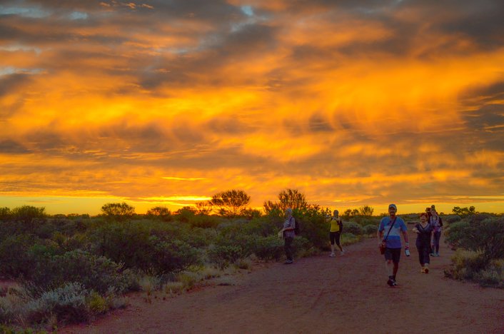Along the trail you will witness sunrise, visit waterholes and the rock art sites of the ancients and learn of Uluru’s cultural significance to the Anangu (local Aboriginal) people. Take time out to enjoy your outback picnic breakfast as you listen to the variety of desert noises from the surrounding environment.