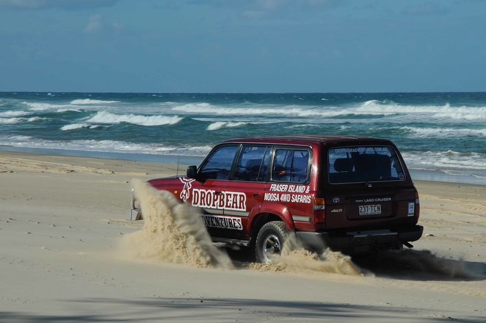 Drop Bear Adventures provides thrill seeking travellers with an authentic 3 day, 4WD self-drive camping safari to Fraser Island departing from Noosa and Rainbow Beach. The ALL INCLUSIVE ticket will get you high quality camping gear including; pre set up 3 man tents (only sleep 2 people) off the ground camp beds with foam mattresses, top sheet, sleeping bag & pillow. Freshly prepared healthy meals cooked for you by our team. All your National Park fees, permits and return ferry tickets. And of course, one of our truly Authentic Australian tour guides to show you around the island like no other.