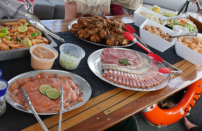 • Tropical afternoon tea – cheese platter / fresh fruit platter / cake platter on sail home
