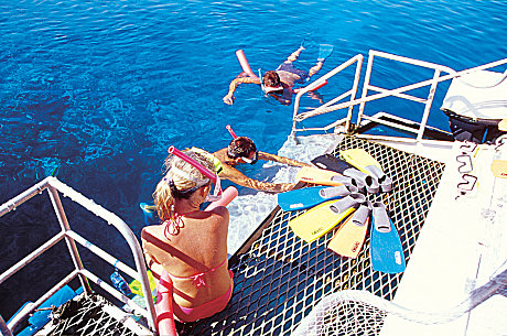 Easy access into the water from the rear platform of the vessel ensures passengers of all snorkelling skill levels can enjoy this exclusive reef location in ease. The vessel also has an underwater viewing chamber, sun and shade deck areas and is equipped with all snorkelling equipment and flotation devices.