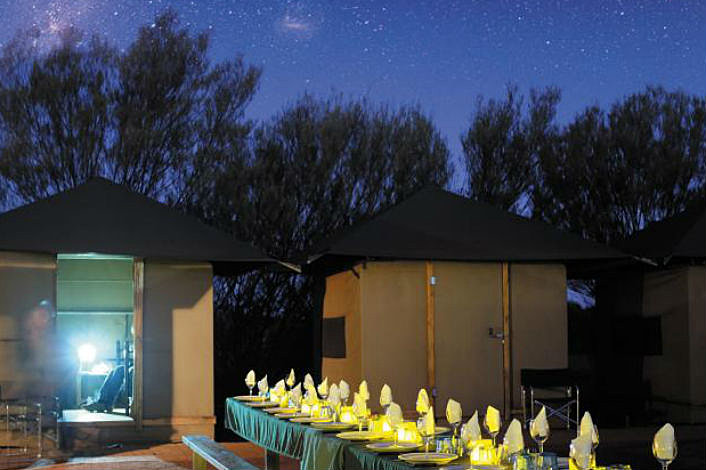 This afternoon we set out to boulder-strewn landscape of Kata Tjuta (The Olgas). Wandering through the site’s gullies and crevices, you’ll learn a little about the area’s geological and ecological significance from your guide. Make back to camp as the sun starts to set, arriving in time for our very special 1,000 Star Dinner