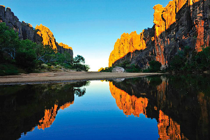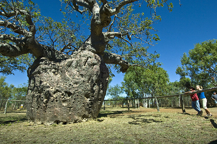 We set off on our journey heading north to Willare Bridge, we cross the mighty Fitzroy River and make a morning tea break at one of the Kimberley’s most famous landmarks the Prison Boab Tree, once used to house convicts. Whilst here view Myalls Bore before continuing along the famous “Gibb River Road” arriving at Windjana Gorge for lunch. Regarded as a classic world geological feature, the gorge is also a renowned freshwater crocodile spotting site. Afterwards, head to Tunnel Creek, a 750 metre long flooded cavern, on this great adventure walk, wade through knee to thigh high water and hear the story of Jandamarra.