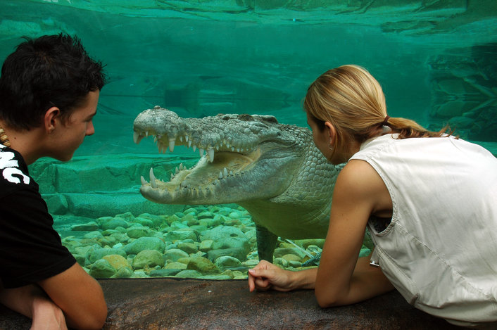 Imagine discovering the secrets, sights and sounds of rainforest wildlife – right in the heart of Cairns! Cairns Wildlife Dome is a spectacular all-weather wildlife exhibit enclosed by a 20 metre high glass dome on top of the Reef Hotel Casino. birds such as parrots, cockatoos and lorikeets fly freely around you. Observe free roaming rainforest wallabies, frogmouths, and kookaburras along with other animals such as pythons, freshwater crocodiles, and the bettong. Come face-to-face with Goliath, a huge saltwater crocodile, in a unique glass underwater viewing tank. Complimentary guided tours and presentations occur throughout the day.