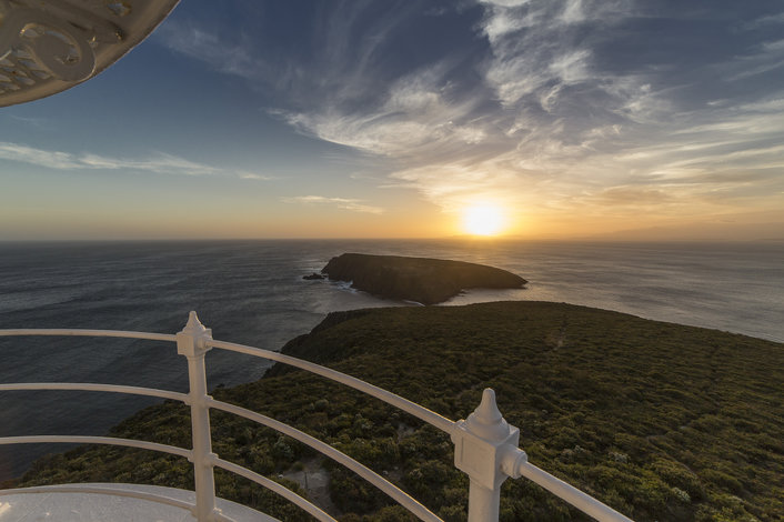 Cape Bruny Sunset Lighthouse Tours offer the perfect opportunity for guests to experience spectacular sunsets and stargazing from the highest point of rugged Cape Bruny. Delve into the history and life as a lighthouse keeper as the sun sets over the South West Wilderness. Between October and May, the short-tailed shearwaters return to their nesting burrows at sunset...this is an amazing site to behold from the Cape Bruny Lighthouse balcony as the seabirds “crash land” within meters of the burrows. Watch as the sun drops behind the Tasmanian Southwest Wilderness from the amazing balcony vantage point perched 114 m above the Tasman Sea surrounded by dolerite sea cliffs and pounding ocean swells.