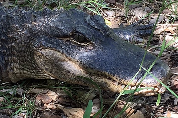 Pole feed a young American Alligator