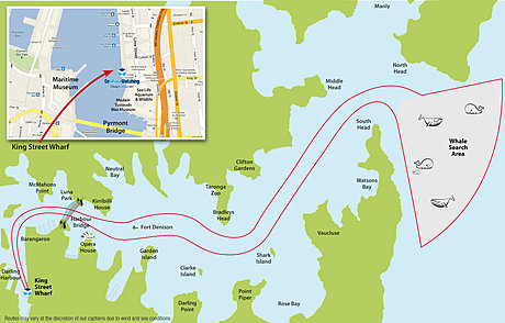 - Whale Watching Cruise, BBQ lunch buffet, tea, coffee and water. Informative commentary of whales and their behavioural patterns and environment, commentary on Sydney Harbour is also included.