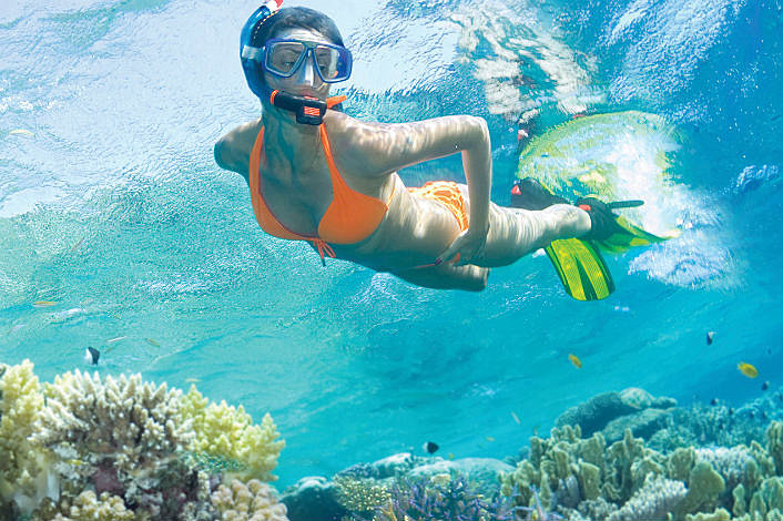 When you dock at the island, you’ll have the chance to look around, take in all the sights and amenities and get to know this amazing island. With use of all the beach hire equipment, you can try out the paddle skis and see if you can spot a turtle, try the coral viewing boards or feel like a kid again on the giant ocean trampoline (beach hire equipment is subject to availability). Then, as part of your tour package, you'll enjoy a glass bottom boat tour over the reef sourrounding the island. You’ll be left in awe of the stunning beauty hidden beneath the waves. The fringing reef of colourful soft and hard corals is the backdrop for a plethora of bright reef fish species and other fascinating marine species. You might even see sting rays, manta rays, non-dangerous reef sharks, starfish, sea cucumbers, turtles and so much more!