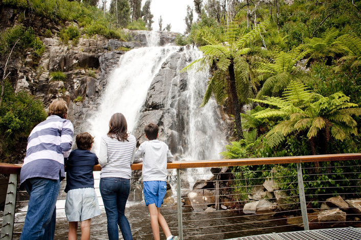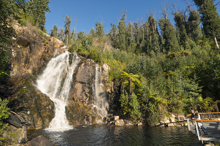 Take a short nature walk to the base of Steavenson Falls