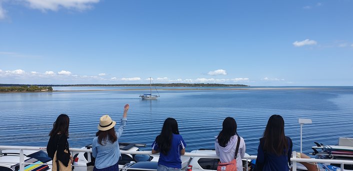 We pick up and drop off from locations between Gold Coast to Brisbane. Then go across Morton Bay via ferry during which  scrumptious morning and afternoon (on the return trip) teas are provided.