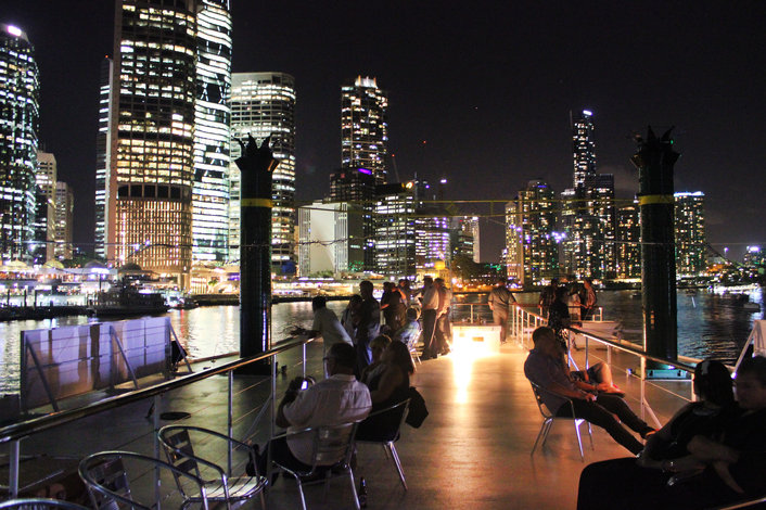 - Boarding and disembarking from the Lower Boardwalk at Eagle Street Pier, 1 Eagle Street, Brisbane. Boarding from 5.30pm for a prompt 6:00pm departure. Please check in at our booking office on the boardwalk level at Eagle Street Pier prior to boarding the vessel. Check-in is open from 2 hours prior to your departure time